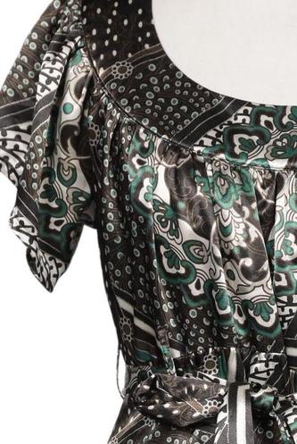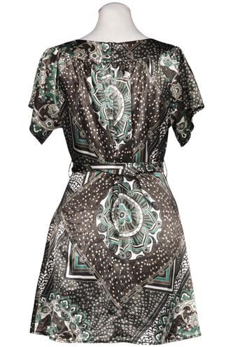 | Détails | Satin, Manches courtes, Ceinture, Col rond, Paisley |