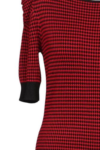 | Détails | Grosse maille, Manches courtes, Col rond, Carreaux |