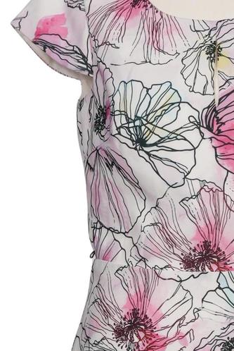 | Détails | volants, Manches courtes, Col rond, Fermeture éclair/boutons arrière, Fleuri |