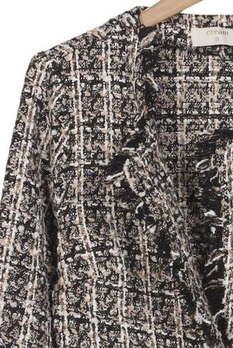 | Détails | Franges, Grosse maille, Manches longues, Col rond, Patte de boutonnage avant, Carreaux |