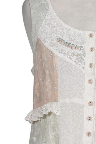 | Détails | Broderie, Dentelles, volants, Sans manches, Col rond, Patte de boutonnage avant, Fleuri |