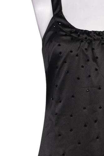| Détails | Satin, Strass, Sans manches, Encolure en V, Fermeture éclair/boutons arrière, Uni |