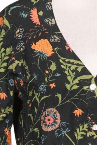 | Détails | Manches longues, Encolure en V, Patte de boutonnage avant, Fleuri |