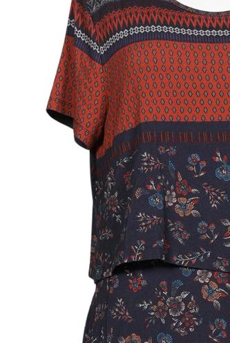 | Détails | Jersey, Manches courtes, Col rond, Fleuri, Rayures |