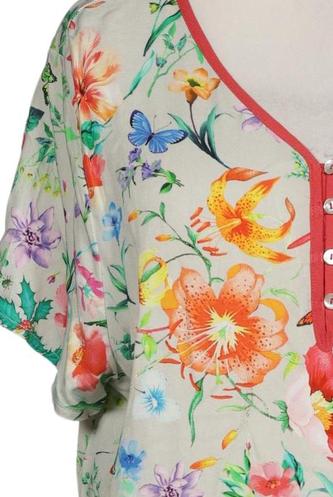 | Détails | Manches courtes, Encolure en V, Fleuri |