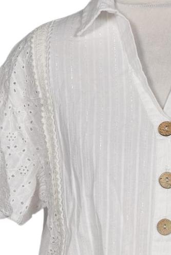 | Détails | Dentelles, Broderie anglaise, Manches courtes, Patte de boutonnage avant, Rayures |