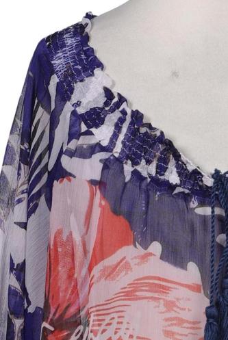| Détails | Franges, Chiffon, Manches trois-quarts, Encolure en V, Sans fermeture, Élastique/cordon de serrage, Fleuri |