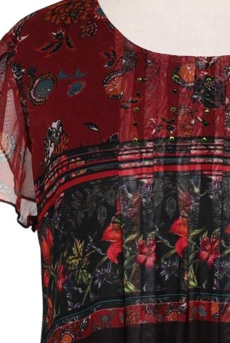 | Détails | Chiffon, Manches courtes, Col rond, Sans fermeture, Fleuri |