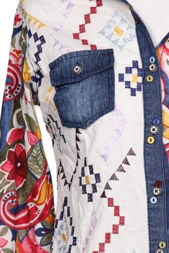 | Détails | jeans, Manches longues, Patte de boutonnage avant, Ethnique, Fleuri |
