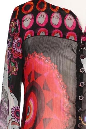 | Détails | Chiffon, Manches longues, Patte de boutonnage avant, Fleuri |