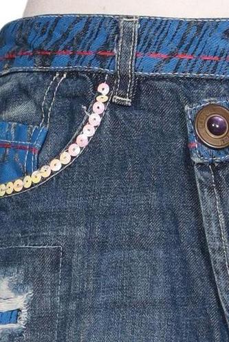 | Détails | jeans, Patte de boutonnage avant, Imprimé à motifs, Effet usé |