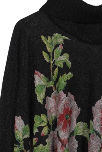 | Détails | Grosse maille, Manches longues, Col roulé, Fleuri |