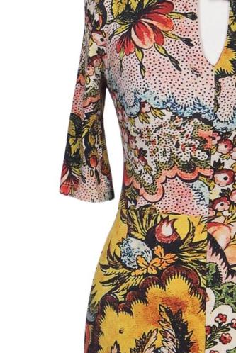 | Détails | Jersey, Manches courtes, Encolure en V, Fermeture éclair/boutons arrière, Fleuri |