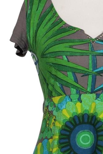 | Détails | Satin, Jersey, Manches courtes, Encolure en V, Fleuri |