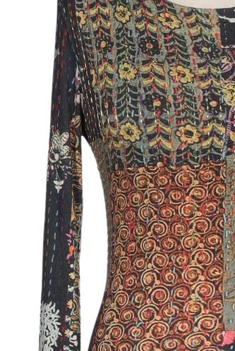 | Détails | Jersey, Manches longues, Col rond, Ethnique, Fleuri |