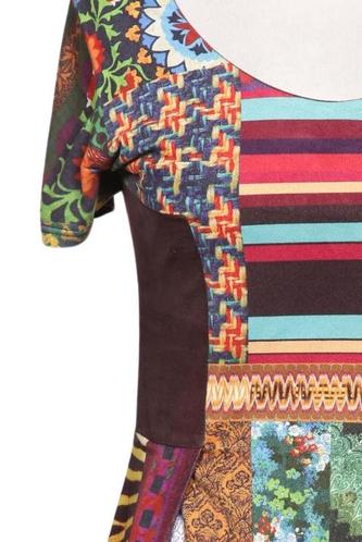 | Détails | Jersey, Manches courtes, Col rond, Ethnique, Fleuri, Rayures |