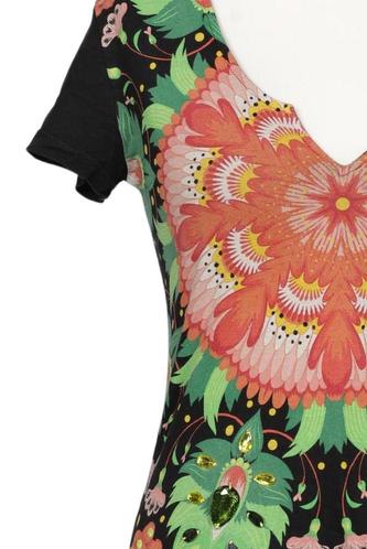 | Détails | Jersey, Manches courtes, Encolure en V, Fleuri |
