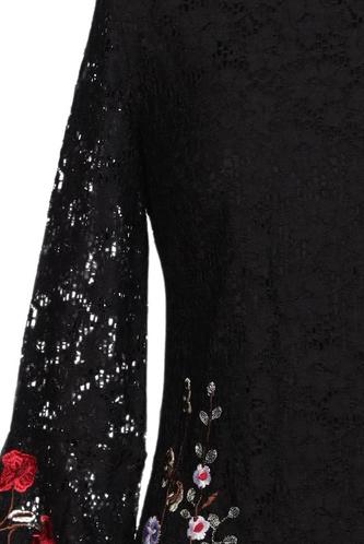 | Détails | Broderie, Dentelles, Manches longues, Col rond, Fermeture éclair/boutons arrière, Fleuri |