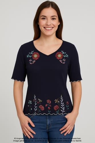 | Détails | Jersey, Broderie, Encolure en V, Fleuri |