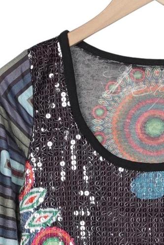 | Détails | Jersey, Sequins, Métallique, Manches longues, Col rond, Ethnique, Imprimé à motifs |