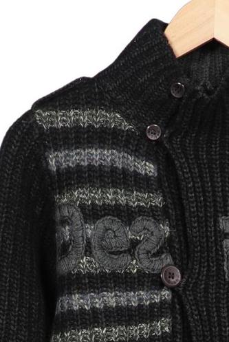 | Détails | Grosse maille, Col rond, Patte de boutonnage avant, Rayures |