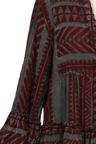 | Détails | volants, Manches longues, Encolure en V, Ethnique |