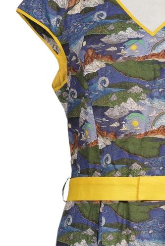 | Détails | Manches courtes, Ceinture, Encolure en V, Fermeture éclair/boutons arrière, Imprimé à motifs |
