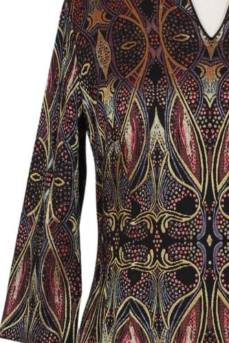 | Détails | Métallique, Manches trois-quarts, Encolure en V, Fermeture éclair/boutons arrière |