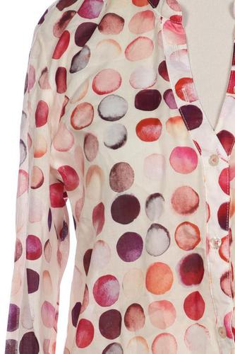 | Détails | Satin, Plis nervurés, Manches longues, Encolure en V, Patte de boutonnage avant, À pois |