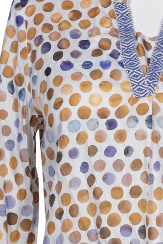| Détails | Satin, Manches trois-quarts, Encolure en V, Sans fermeture, À pois |