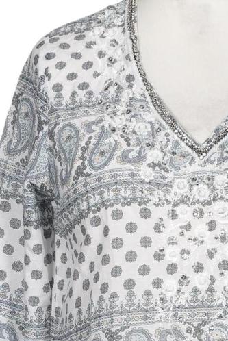 | Détails | Manches longues, Encolure en V, Sans fermeture, Paisley |