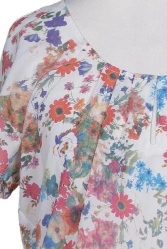 | Détails | Manches courtes, Col rond, Sans fermeture, Fleuri |