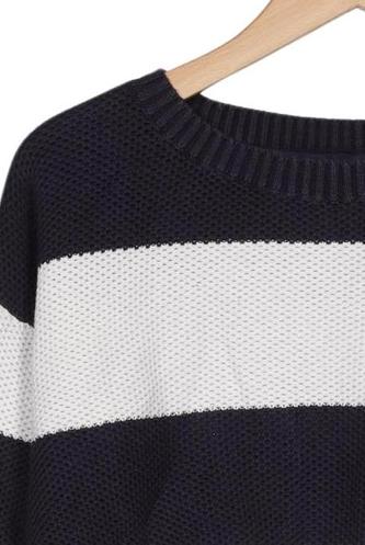 | Détails | Grosse maille, Manches trois-quarts, Col rond, Rayures |