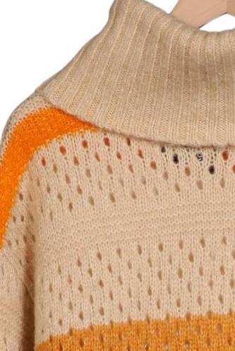 | Détails | Grosse maille, Manches longues, Col roulé, Rayures |