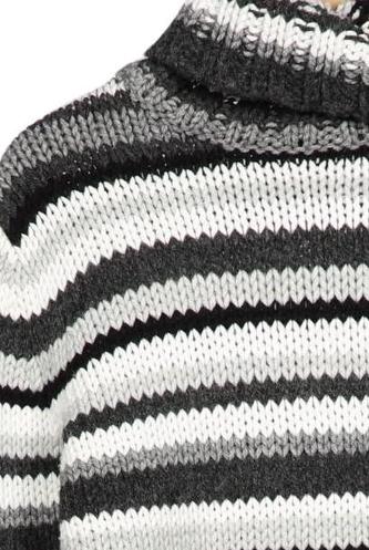 | Détails | Grosse maille, Manches longues, Col roulé, Rayures |