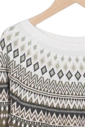 | Détails | Grosse maille, Manches longues, Col rond, Ethnique |
