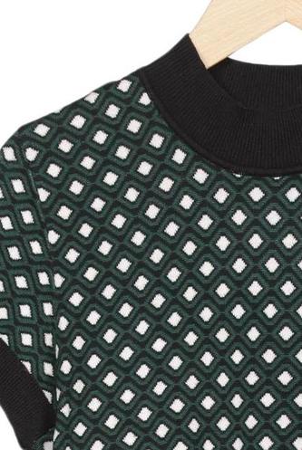 | Détails | Grosse maille, Manches courtes, Col rond, À pois |