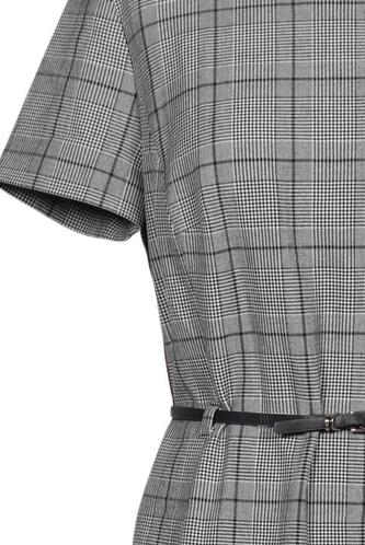 | Détails | Manches courtes, Ceinture, Col rond, Fermeture éclair/boutons arrière, Carreaux |