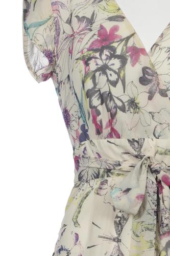 | Détails | Chiffon, Manches courtes, Ceinture, Encolure en V, Fermeture éclair/boutons arrière, Fleuri |