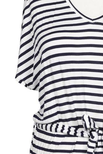 | Détails | Jersey, Manches courtes, Ceinture, Encolure en V, Rayures |