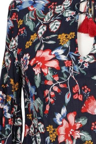 | Détails | Jersey, volants, Manches courtes, Encolure en V, Fleuri |