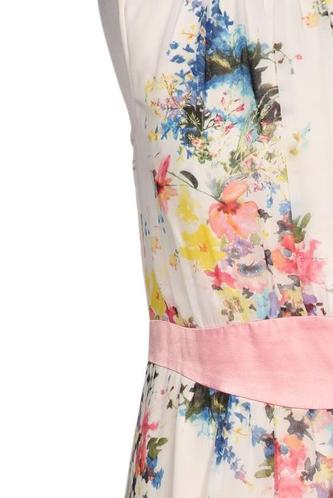 | Détails | Chiffon, Sans manches, Ceinture, Col rond, Fermeture éclair/boutons arrière, Fleuri |