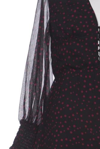 | Détails | Chiffon, Manches longues, Encolure en V, À pois |