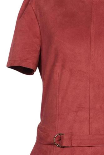 | Détails | Daim, Manches courtes, Ceinture, Col rond, Fermeture éclair/boutons arrière, Uni |