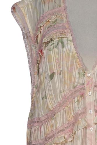 | Détails | Dentelles, volants, Chiffon, Plissé, Sans manches, Encolure en V, Fleuri |