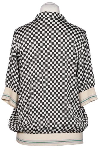 | Détails | Satin, Manches courtes, Patte de boutonnage avant, Carreaux |