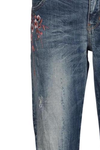 | Détails | jeans, Broderie, Fleuri, Effet usé |