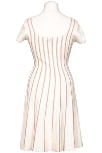 | Détails | Grosse maille, Manches courtes, Encolure en V, Fermeture éclair/boutons arrière, Rayures |