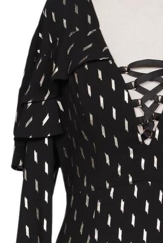 | Détails | volants, Chiffon, Métallique, Manches longues, Encolure en V, Imprimé à motifs |
