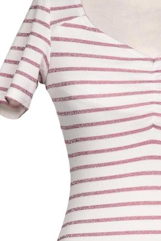 | Détails | Jersey, Manches courtes, Encolure en V, Rayures |